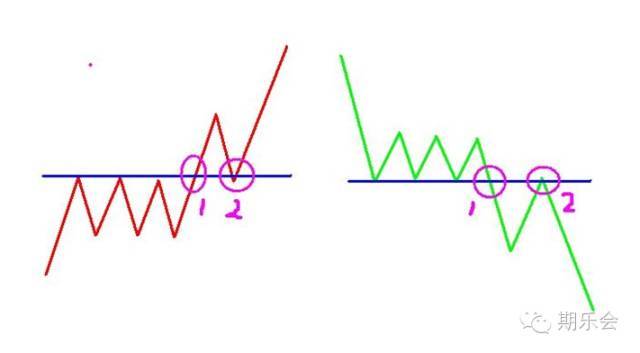 这里说的就是,上涨中,我们要找到横盘的时候,当横盘的高点突破时,我们要坚决入场,此时往往伴随着放量,会令你迅速远离建仓区,迅速获利。另外一种就是当价格突破以后,会寻找支撑,以获得更大的动能,我们可以在第二个入场点位入场,当你在第一个点位入场,价格涨幅很小,同时又下跌回试支撑的时候,你可以继续拿单,不要着急,因为后面的行情肯定是不会小的,不然行情不会去寻找支撑。