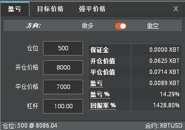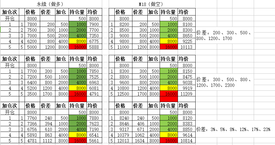 在8000美元同时开多开空500张,当价格运行到7800时,多单1000张空单500张,多单的均价7900左右,空单均价8000。