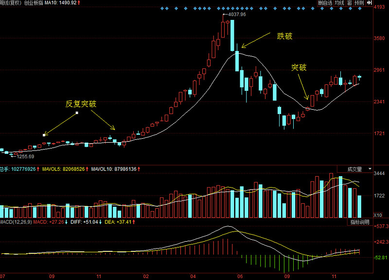而真正的突破【10周线】并走多是2015年12月23日该周,正式拉开该轮牛市行情,股指一直运行在【10周线】上方。