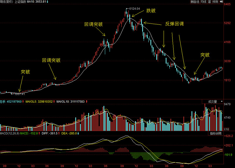 不过,大盘在上涨途中有2次机会跌破【10周线】,分别是2015年2月6日该周K线和2015年3月6日该周线,但都没有最终形成真正的下跌。