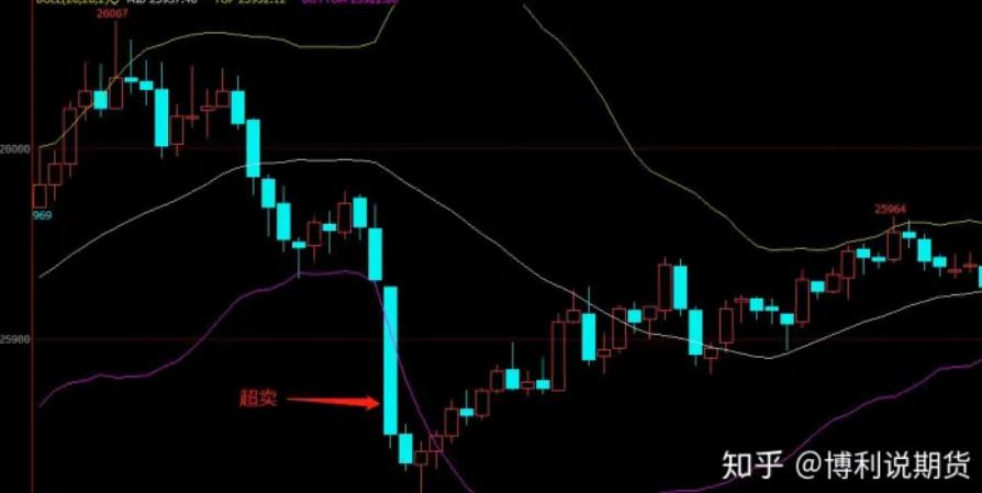 当下跌强势突破布林带下轨这就是超卖,超卖形成时布林带一般会扩张的比较大,之后会有一波上涨跌行情。