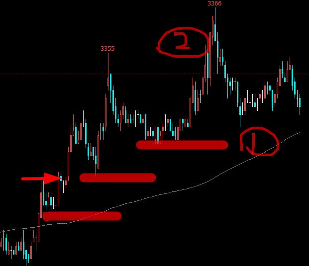 重点来了,这个期货日内高手3分钟线+120MA战法怎么操作呢?均线当然老样子,上多下空,那么进场点呢?那就简单了,就是突破!只要突破就进场!如下图所示: