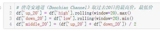 以沪深300股指(2021-12-01至2022-04-06)为例,进行唐奇安通道策略的演示。唐奇安通道上下轨的计算十分简单。