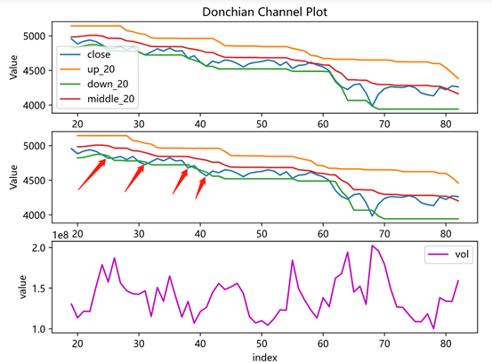 唐奇安通道如何规避震荡?Donchian Channel(唐奇安通道指标)是用于交易突破的最古老、最简单的技术指标之一。是由Richard Donchian 提出的一个由三条线(上阻力线、下支撑线、中心线)组成的通道指标。