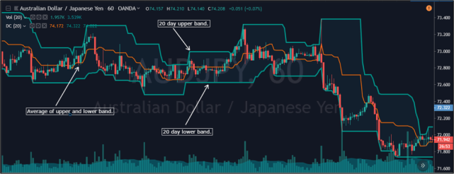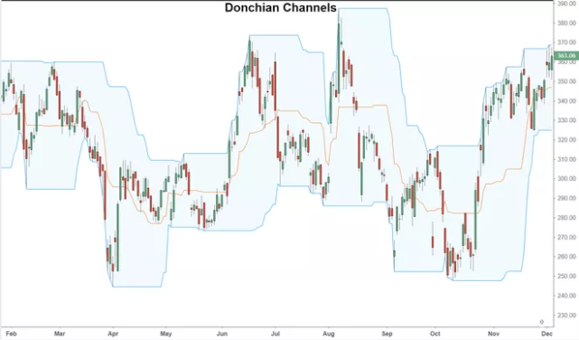 一般来说,唐奇安通道的宽度越宽,市场波动就越大,而唐奇安通道越窄,市场波动性也就越小。此外,价格走势可以穿过布林带,但你看不到唐奇安通道的这种特征,因为其波段正在测量特定时期的最高价和最低价。