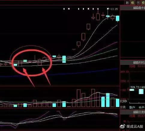3、激进的投资者可以在5日均线抬头向上是买进;