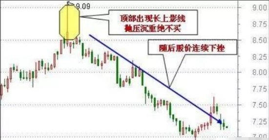 个股在上升趋势中运行,突然某个60分钟内快速拉升,随后抛盘不断涌出,导致股价回落至上一个60分钟K线收盘价附近,留下一根长长的上影线。此K线形态意味着多头积极追高,但高位抛压较重,股价系那个上攀越艰难,行情很可能调头向下。