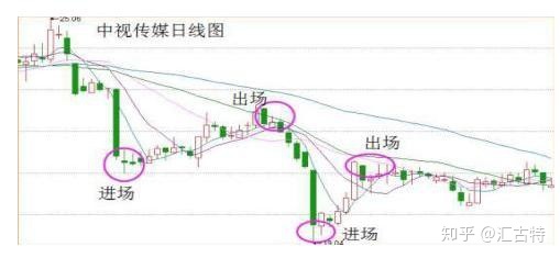 以中视传媒(600088)为例,20日、30日、60日均线呈空头排列,股价处于下跌趋势中,股价技术下跌出现止跌反弹信号可以买入,如图给出的进场点。股价反弹一波后出现反转信号,如图给出的出场点,因为后期股价还要下跌,这时要及时的止盈离场,谨防盈利回吐的风险。