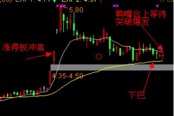 (2)在股价调整一段时间之后,股价调整到EXPMA60日均线(即鸭下巴)附近形成鸭嘴。(3)股价突破EXPMA10日均线即白色线就是爆发点和买入点。