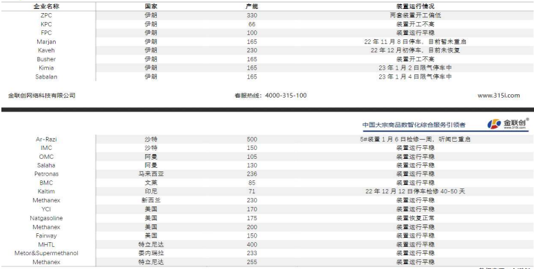 2.临近春节,国内多地甲醛降负/停车,对甲醇的需求继续减弱;