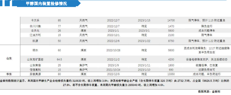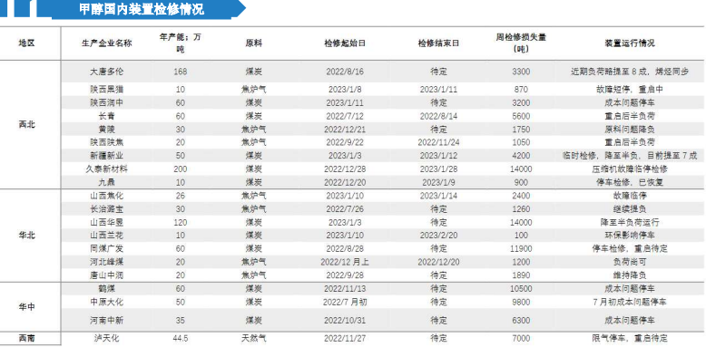 3.久泰托县12.28临停检修1个月左右,兰花因环保停车。