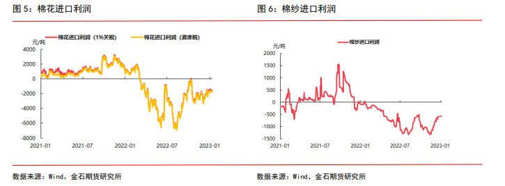 3、2022年我国累计进口同比减幅44.50%,据上海国际棉花交易中心,据海关统计数据,2022年12月我国棉纱进口量8万吨,同比减少6万吨,减幅为45.60%,环比持平。2022年1-12月累计进口棉纱118万吨,同比减幅44.50%。