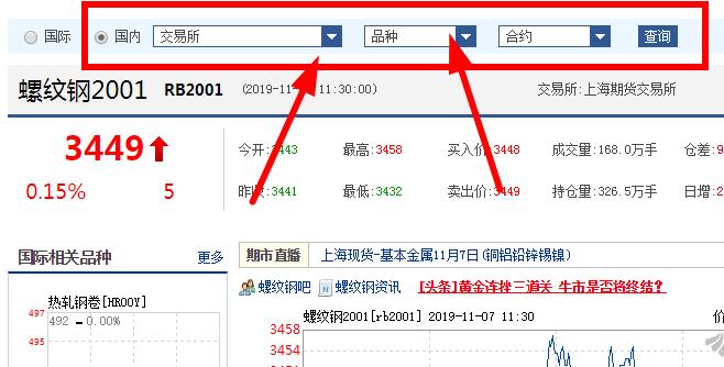 这个相信大多数人都不会这么做吧?但是RB螺纹钢期货交易网最常使用的便是这个查询方式了,主要原因很简单,因为在上面有个导航条,不单可以查询螺纹钢的最小交易单位,同时还可以快捷切换其他合约,大大提高查询速度,如下图在选择框中可以进行选择和切换,大家可以去尝试一下哦~