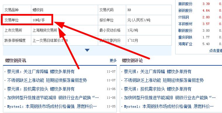 3.上海期货交易所网可以查阅螺纹钢最小交易单位