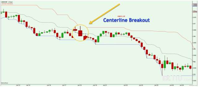 中心线有几个用途。首先,它可以用作突破信号以进入新的位置。当价格越过中心线向上时,可以买入;当价格越过中心线向下时,可以卖出。激进的交易者从中心线进入,开始下单,而不是等待支撑/阻力线突破。