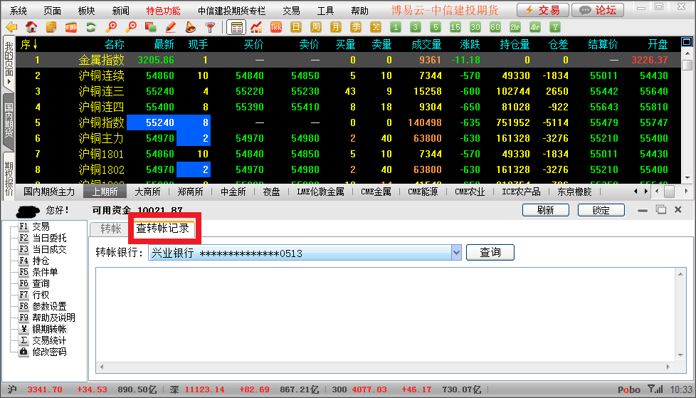 4、出入金操作完毕后点击“转账查询记录”可以查看出入金金额和流水。