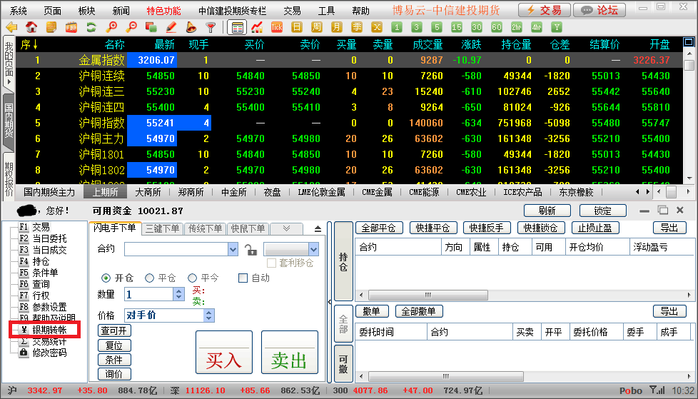 1、登录博易云(博易大师)期货交易软件,点击所下角的“银期转账”;